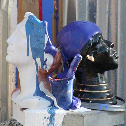which is in a place called desertWonderland. Newly painted front gate. Also a photograph of the black and white goddesses that watch over my place night and day. They were pleased with all the painting.