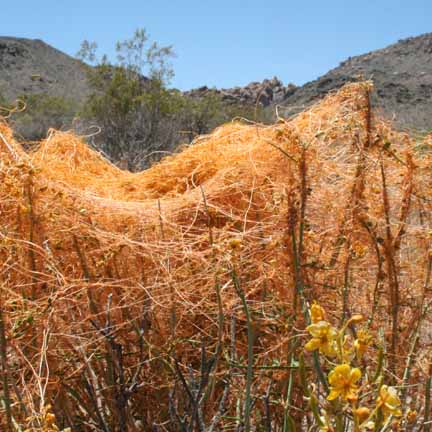 This past weekend, my bml, or beautiful male lover, soon to be husband and I were at The Palms in Wonder Valley for the Wonder Valley Music Festival. We also got a chance to see the rare mariposa lily and witches hair (Cuscuta californica) a lovely firey orange parasite, in Joshua Tree National Park.