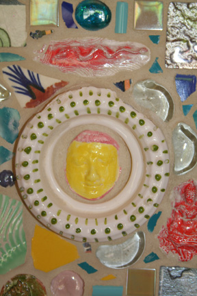 Folks, I’ve been so wrapped up in my lover’s arms, I mean wedding plans… I mean workshops, NO WAIT… wedding planning, postal meanderings, eQuality banging and fluxing with the international mail art community, refreshingly, again… that I have not posted some of my art in a while. So here’s a brand new piece that I created this weekend during the workshop I gave in Santa Barbara. I will continue to post the love video of the day till June 17th… Obsessed? Me??? This Buddha and Bird mosaic is 2’5″x8″ on backer board, ready to install or just hang up as is. Has a wire for hanging in the back. To purchase.