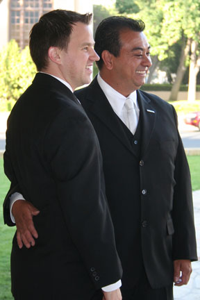 Doug and I got to the courthouse steps at 10 til 7. There was no one there. After another half an hour went by people started showing up. We were first through the door. Below you’ll find the first two pictures of my beautiful partner and then the other couples waiting in line to be wed. At the bottom of this post are a couple of pictures of some local ministers who were handing out flowers to all of us.