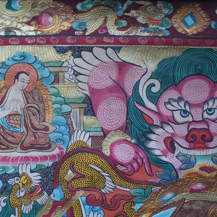 Zongkapa, founder of the Gelug (Yellow) Sect of Tibetan Buddhism, was born in the place where the Tar Monastery is located. The 3rd Dalai Lama Soinam Gyamco initiated construction of the monastery in Zongkapa’s honor. Gradually, it became the mecca for Buddhists of Tibetan, Mongolian and Tu ethnic groups. And the 4th, 5th, 7th, 13th and 14th Dalai Lamas as well as the 6th, 9th and 10th Panchen Erdenis once lived there. During its heyday, the Tar Monastery had as many as 70 Living Buddhas and 3,600 monks. Many of them were appointed Hutugto Living buddhas by the Qing (1644-1911) imperial court. Due to its size and influence, the Tar Monastery emerged as one of the six major monasteries of the Gelug Sect. Thangka and Frescoes in the Tar Monastery are rich in content and elegant in style. Debating Buddhist Scriptures, Portrait of Six-Way Samsara and Fresco of Kalachakra ,Shkyamuni,Taras reconsidered the most representative. The frescoes are all painted with yellow, red and blue colors to highlight the themes.