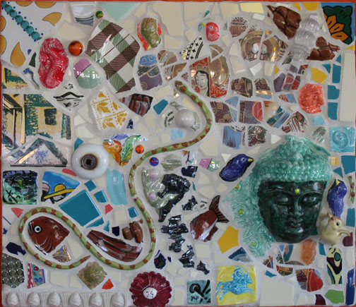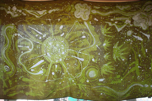 Specifically in Wonder Valley…at Perry Hoffman’s studio and home, where he unleashed a plethora of works in a multi-medium extravaganza. Batiks, ceramics, photographs with paint and mosaics merging onto the EVERYTHING wall. Everything card. Here are some photos of the work and the day. I’m sorry that at present time I do not have pictures of Chris’s work. Not as many people as in previous years but a success non the less on many levels and great to see so many interested people. Interested in art and the desert environment and preserving the latter. Please feel free to leave your comments for Open Studio Tour 2008 at the open forum.