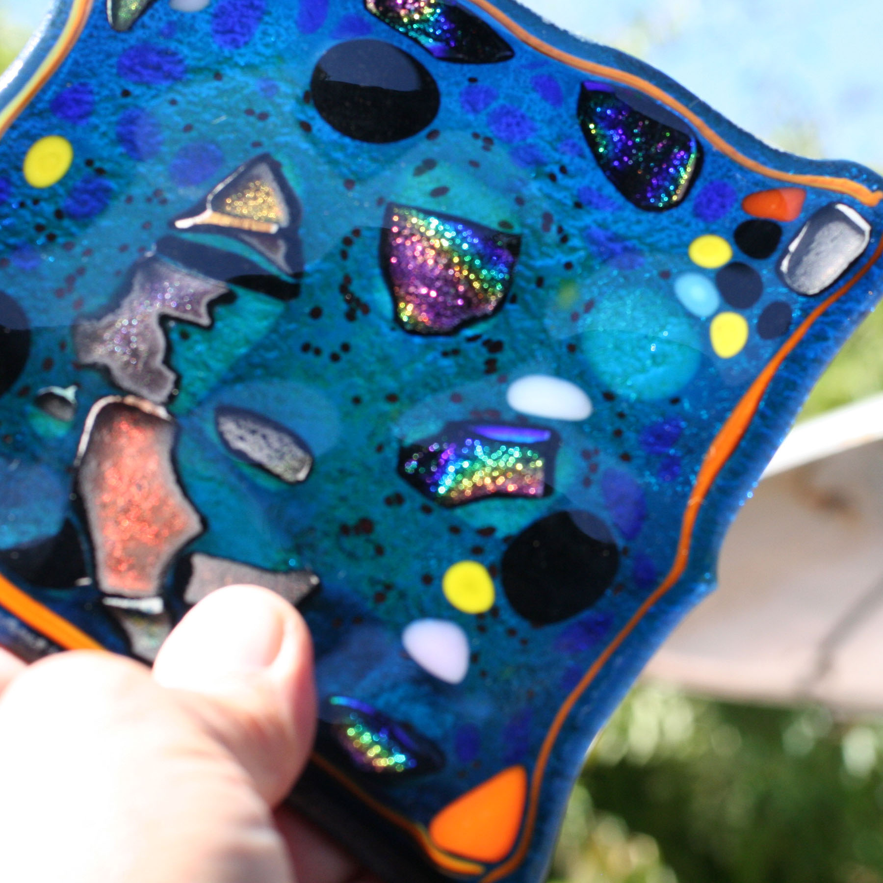 5"x5" fused glass tile, made in Utila, Honduras