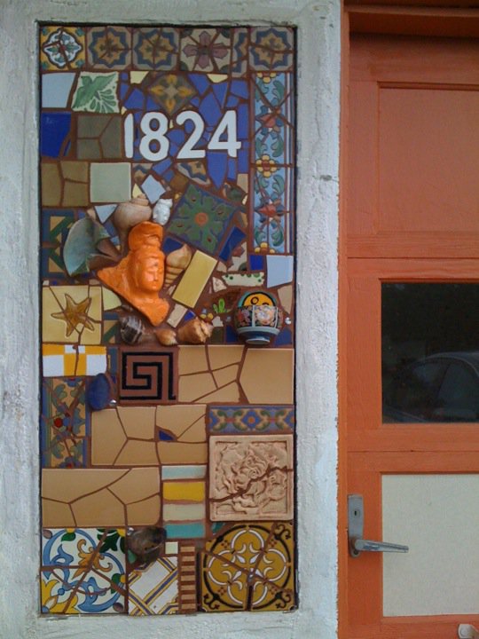 January 1, 2011 I installed an address panel for knife-maker and culinary expert, Don Carlos Andrade in Los Osos, California. On February 12 and 13 I’ll be hosting a Mosaic Workshop in the desert. March first I have a solo show at the 29 Palms Art Gallery, featuring mainly mosaics and some photo-montage work as well.First week of March I will be installing a mosaic shower and sink at the Harrison House in Joshua Tree. Also, supervising the installation of 8 mosaic panels in the sidewalk of the Historic Plaza in 29 Palms at the end of March. Rumors have it, a “desert to the sea” show in Bakersfield at the Metro Galleries could be in the works as well.