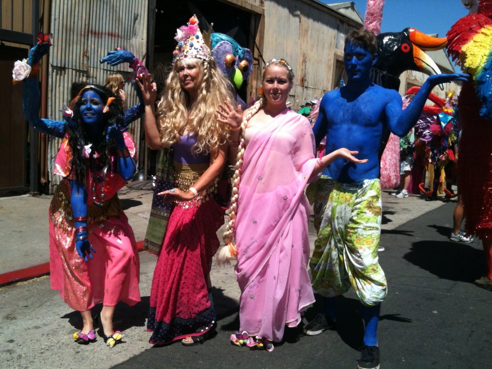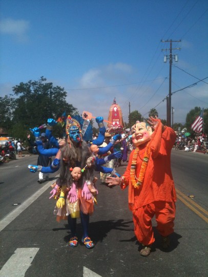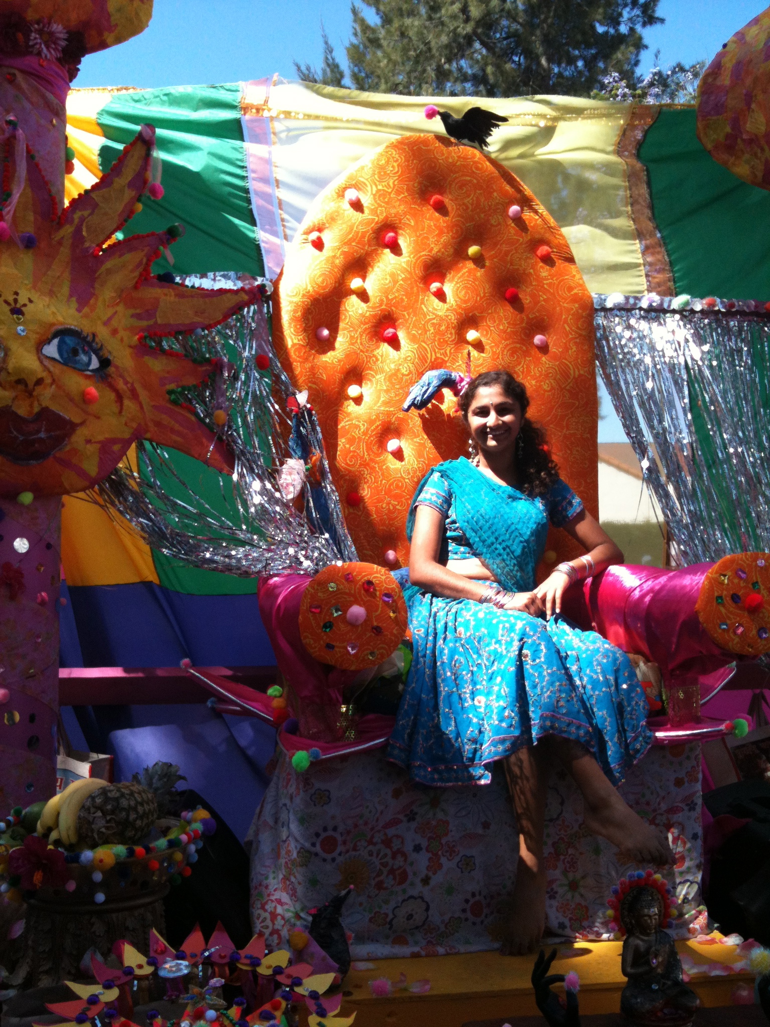 Paper maché a moon, a sun, 4 turrets and a lion with my 3 neices and nephew who landed at the right time, magically like everyone else… came to assist in bringing the vision to light. Jai Ganesha !!! With M.C. Yogi’s fabulous, Ganesh is Fresh on the super speaker system, we took off, down State Street, to the cheers of the crowd, 100,000 strong… Push, push, push THAT float!!! Somehow, I was destined to push my creation up the street with my husband and 4 other volunteer helpers, with 700 pounds on board… oy vey !!! I survived and did not have a heart attack, SUNNY day in Santa Barbara and all up hill… I did end up with a couple of doctor visits the week after… whew!!! I’m ok… good actually! Feeling blessed and grateful for every part of it.