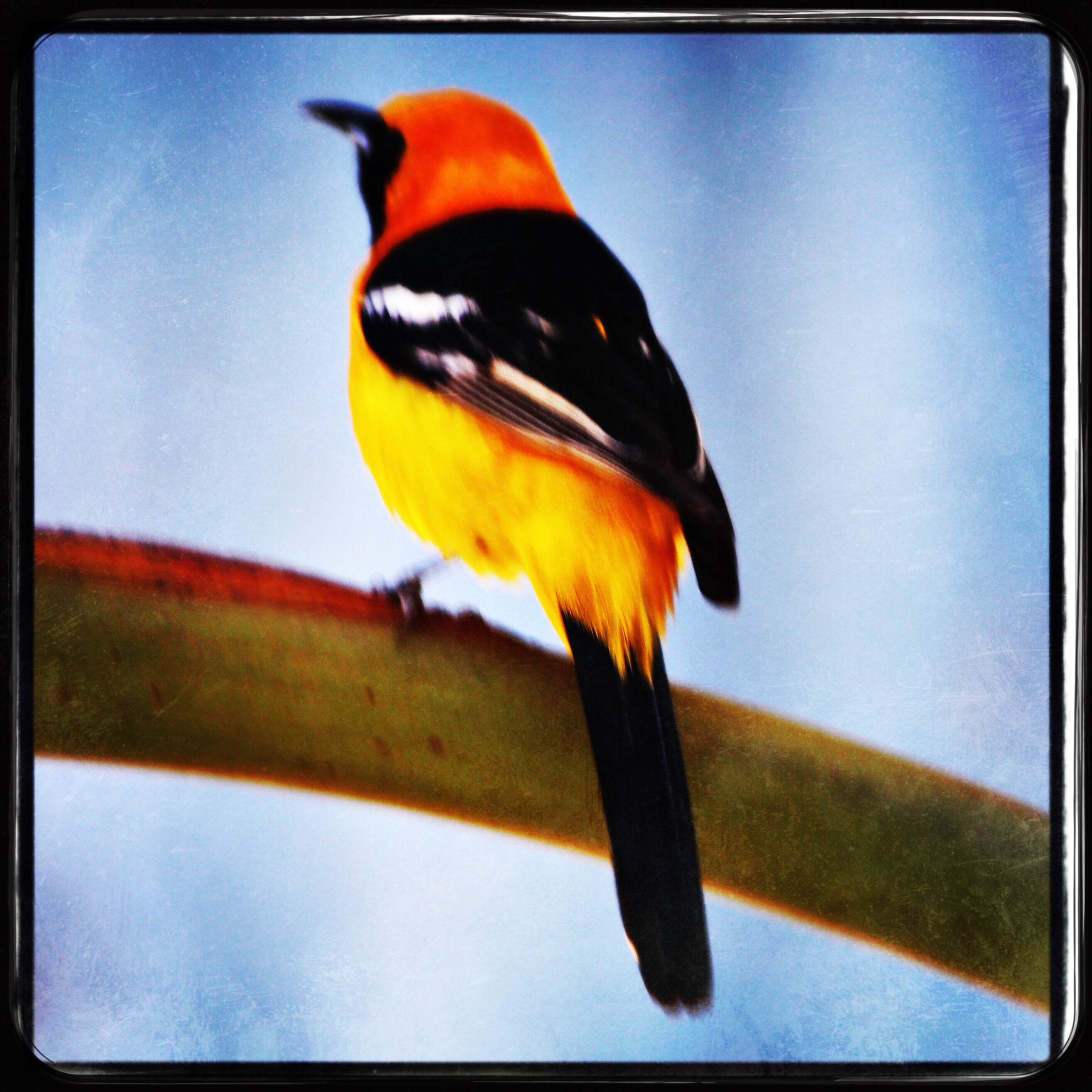Uncategorized Hooded Oriole Posted by magentaraven on Sunday, April 29, 2018Sunday, April 29, 2018 This bird has been visiting my garden every year. A delight to see each spring on the central coast of California Share this: Click to share on Facebook (Opens in new window) Facebook Click to share on X (Opens in new window) X Like Loading...