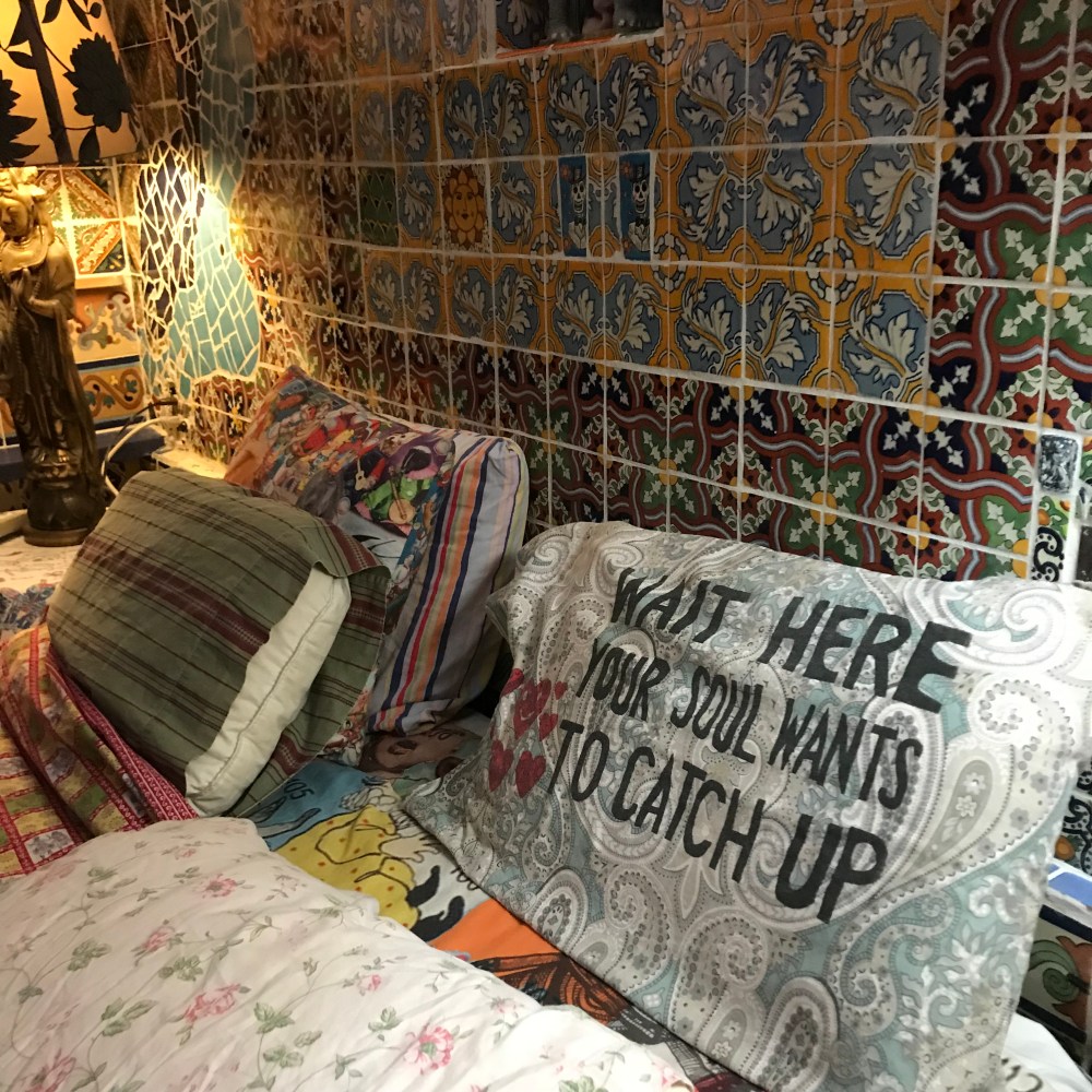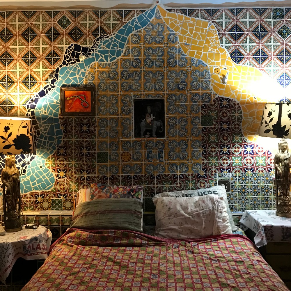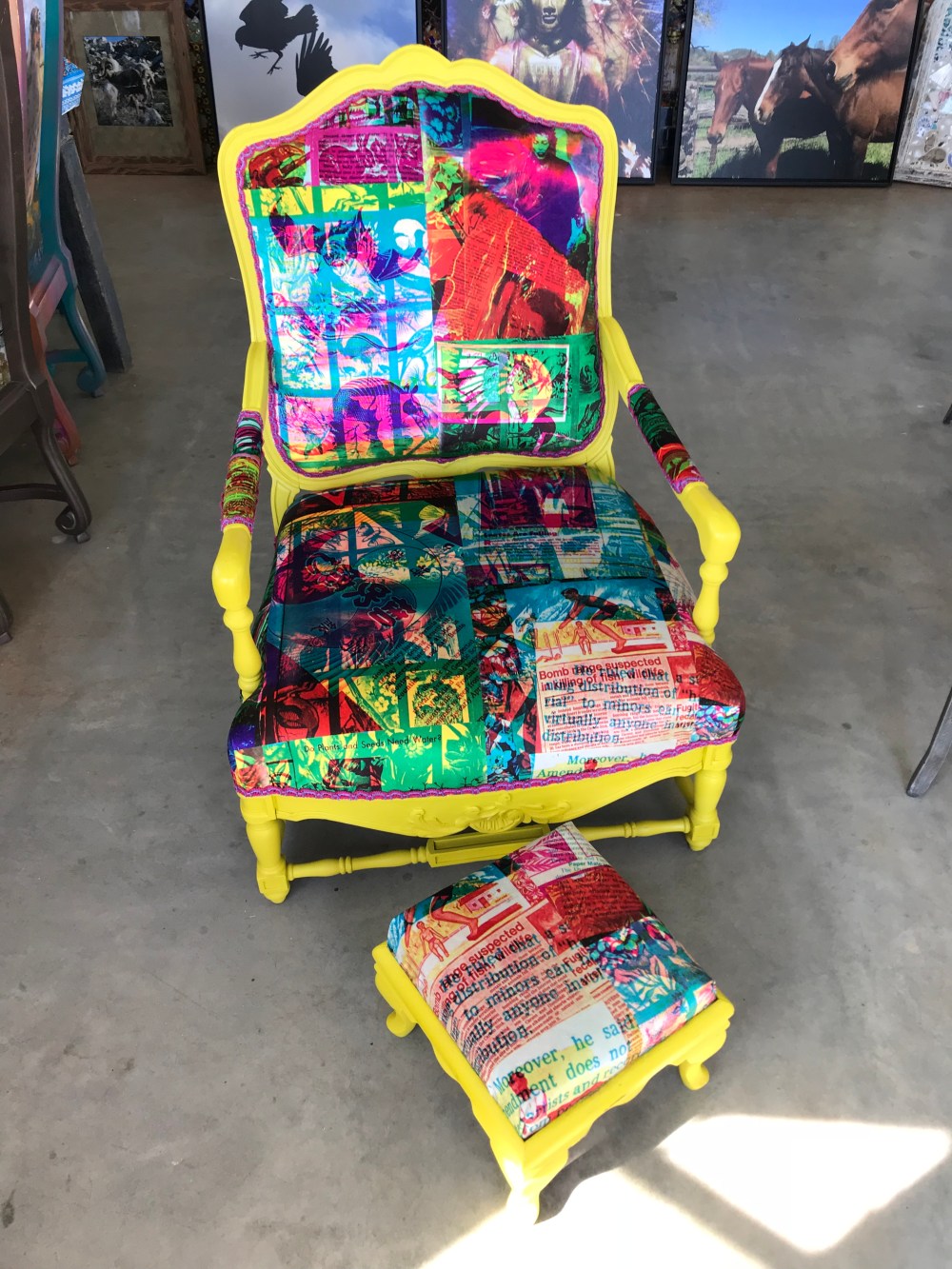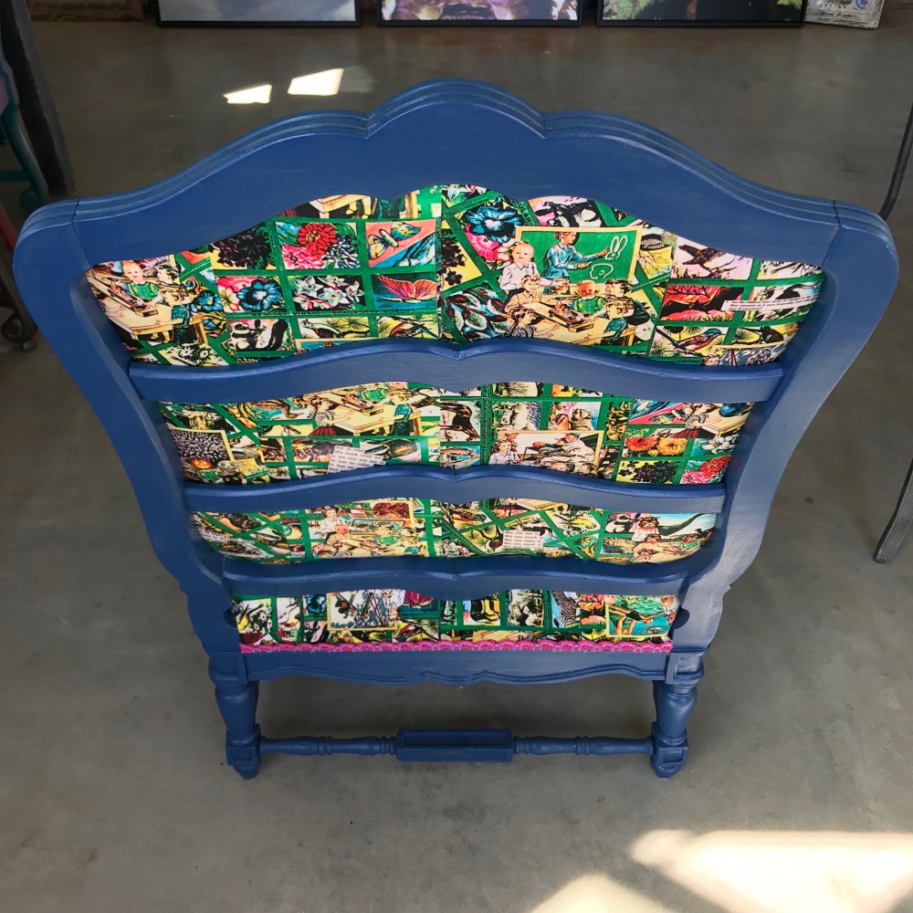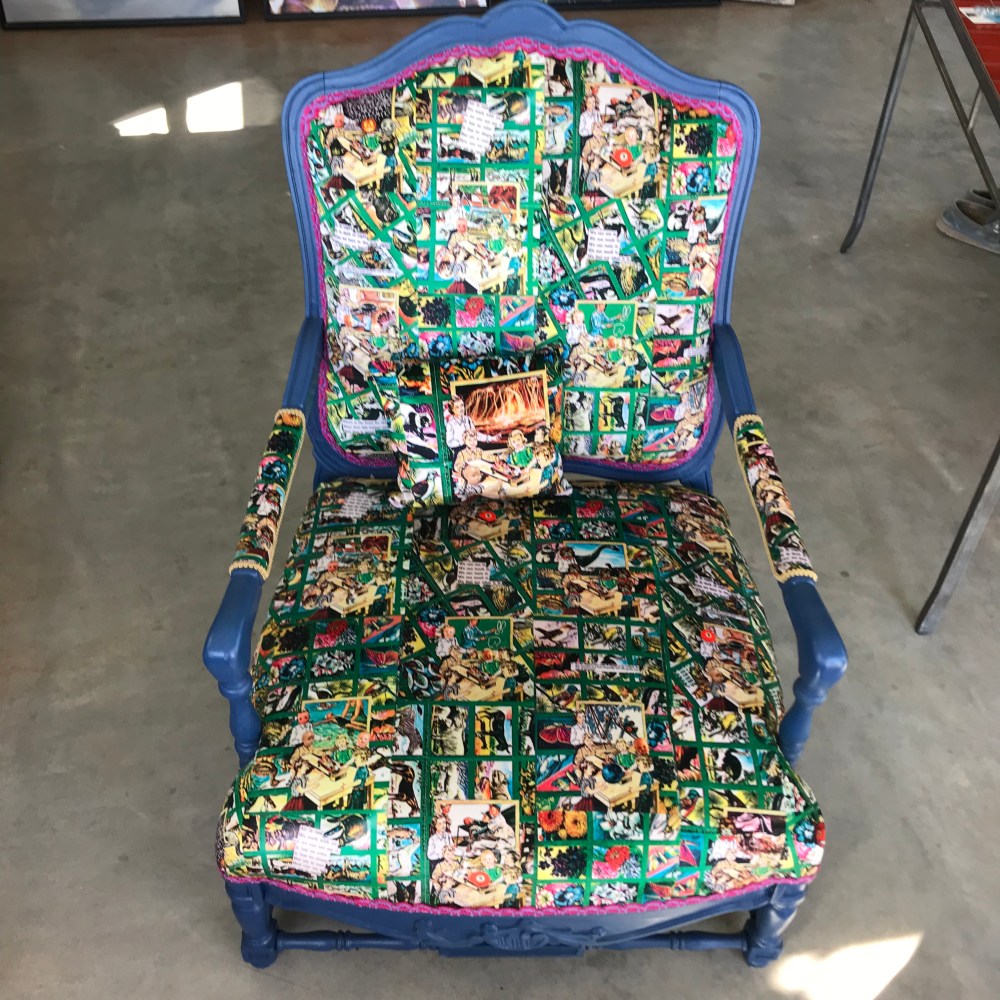 Every day seems to be jam packed with the good, the bad and the ugly. Many distractions and sometimes pets break nails. However, looking back on the art tours, I’d like to share a few images of art that sold and went to new homes. Two velvet chairs that were color Xerox’s from the 80’s that I had created then, revisited and revised and now velvet. My husband , Doug Smith created these wonderful chairs with the new velvet and both went to new homes in the high desert.