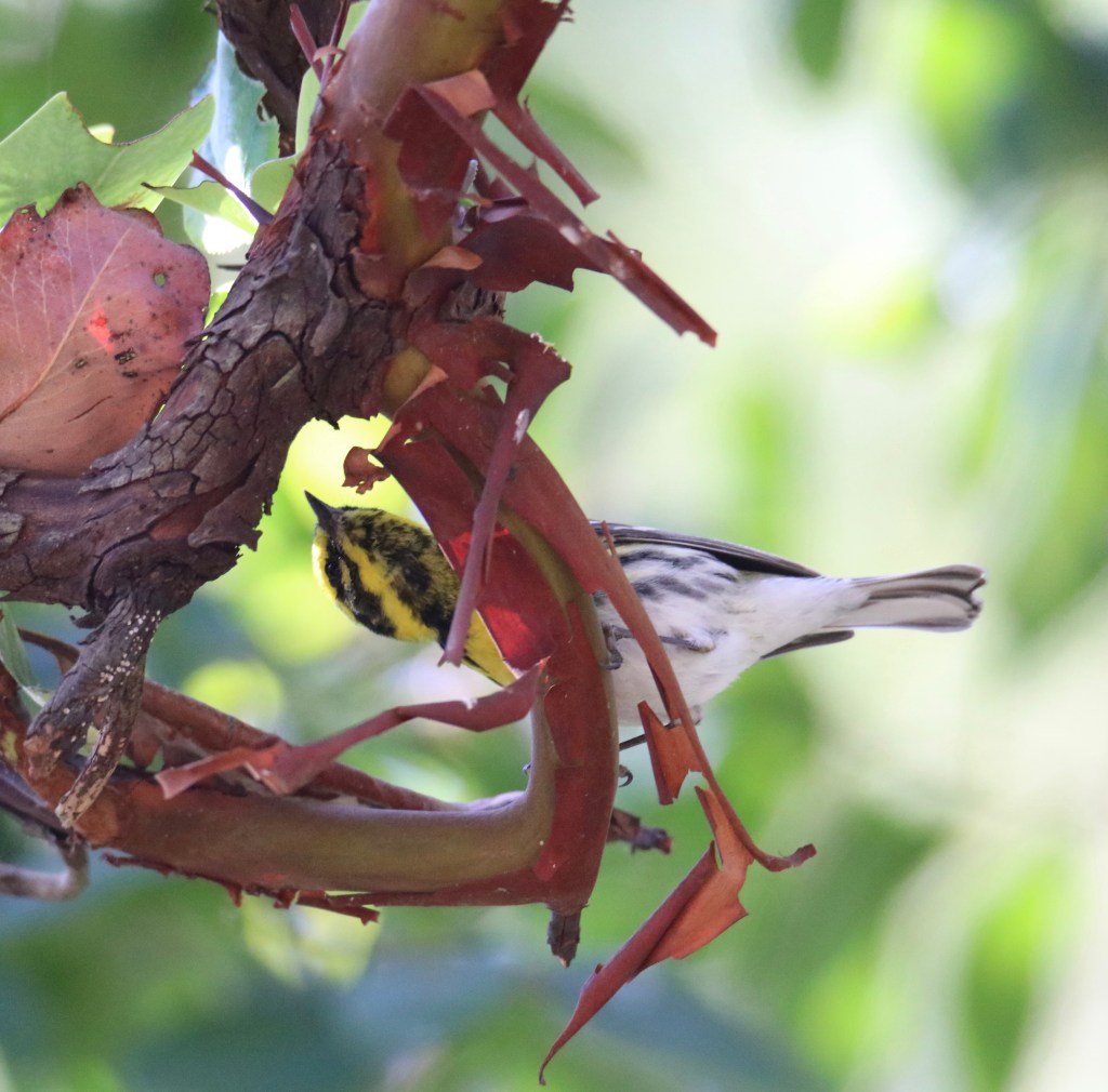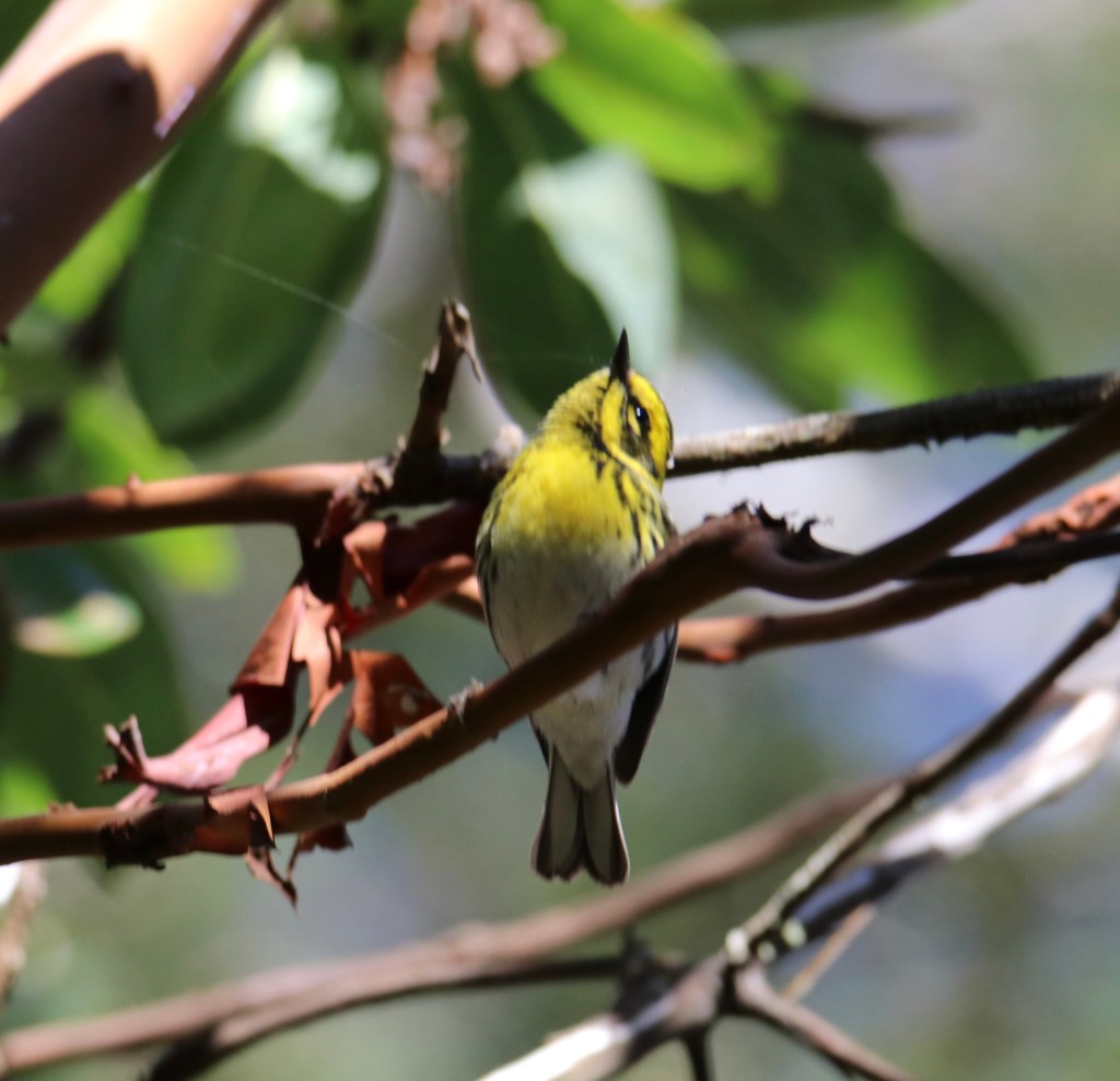 Uncategorized Townsend Warbler Posted by magentaraven on Monday, December 5, 2022Monday, December 5, 2022 The morning I saw this little warbler hopping from branch to branch on the Madrone was pure magic. Mornings that start like this are always good. Share this: Click to share on Facebook (Opens in new window) Facebook Click to share on X (Opens in new window) X Like Loading...