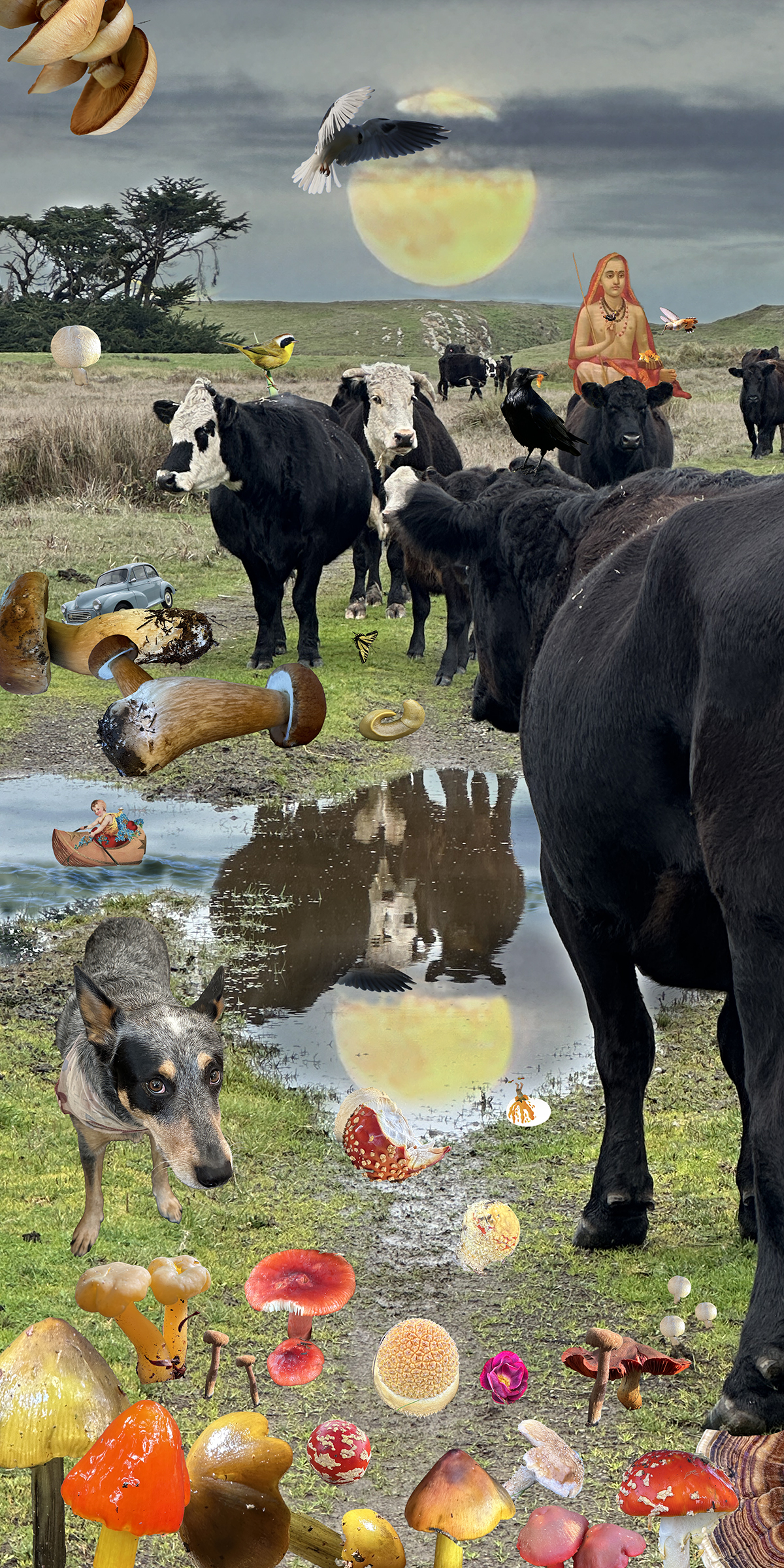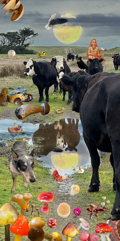 Uncategorized Cow Portal on a full Moon Posted by magentaraven on Sunday, December 28, 2025Sunday, December 28, 2025 Cow Portal is a digital collage of mostly images I have taken and photographed. Happy Winter Solstice. Another 12X24 metal print available soon. Share this: Click to share on Facebook (Opens in new window) Facebook Click to share on X (Opens in new window) X Like Loading...